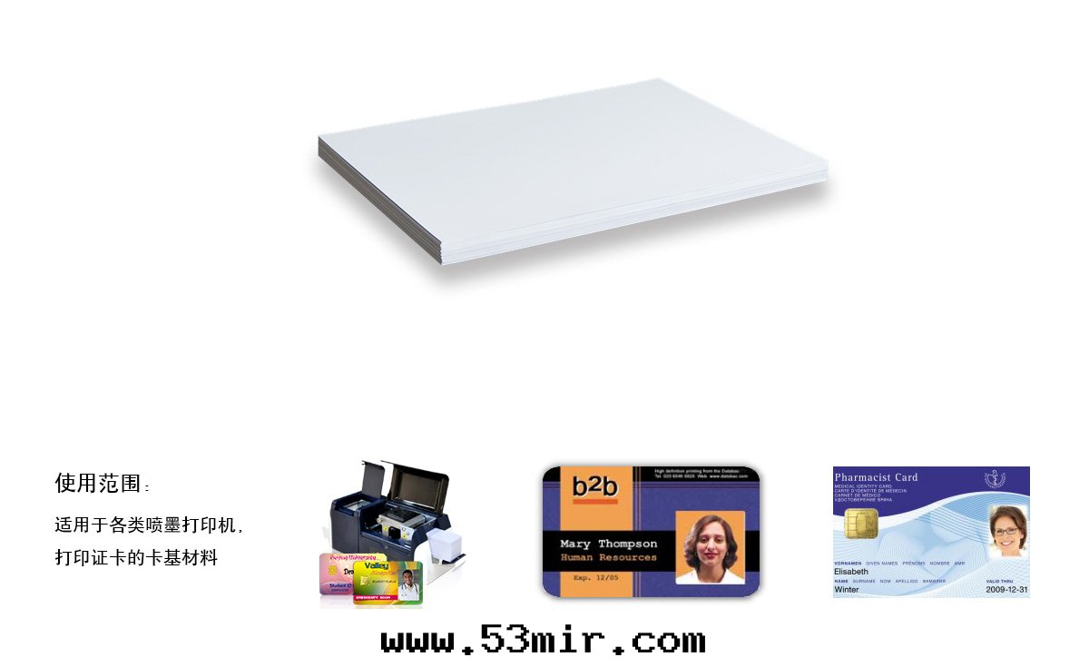 适用(yòng)于各(gè)類(lèi)噴墨(mò)打印(yìn)机,制作(zuò)打印(yìn)證卡(kǎ)的(de)卡(kǎ)基材料。